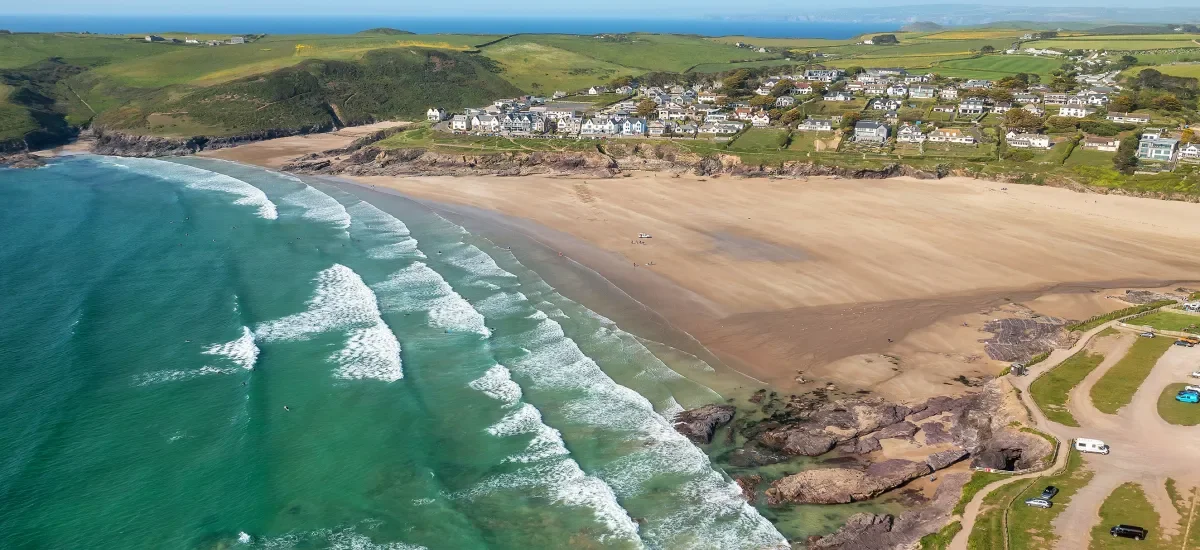 Joins with Daymer Bay at low tide to create a mile-long sandy stretch - safe, sheltered and perfect for families.