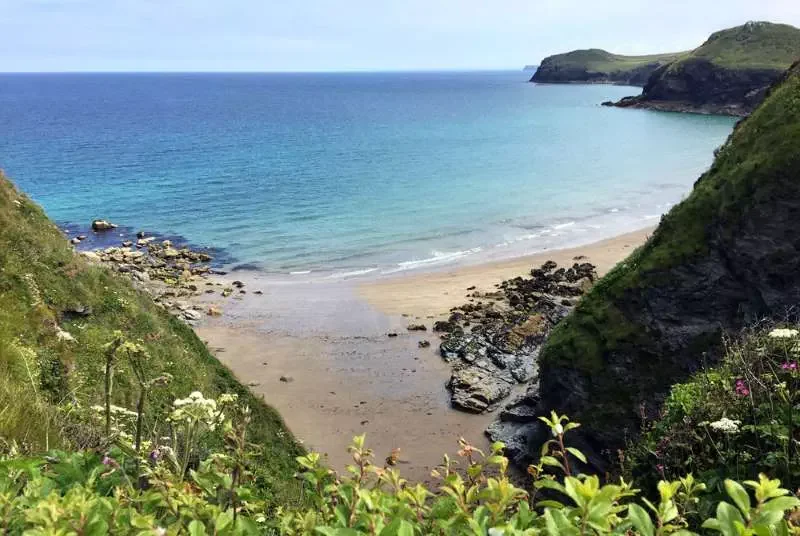 Tide: Smaller beach at high tide, accessible from Polzeath side